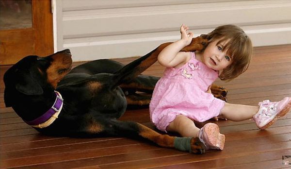 Khan zaczął dziwnie bawić się z dzieckiem. Charlotte nie poruszyła się, czekała na to, co będzie dalej, a potem doberman zrobił coś jeszcze bardziej nieoczekiwanego.